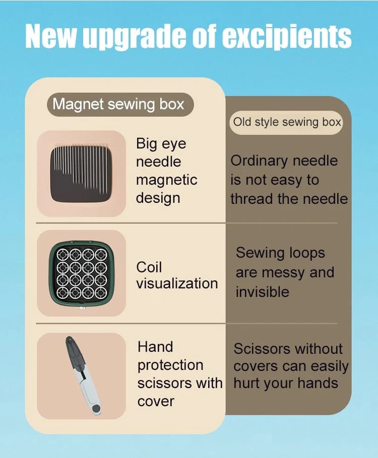 With its compact 5.6cm thickness, this portable sewing kit is designed for effortless transport and storage. Whether at home or on the road, it's the perfect companion for quick fixes and creative projects.